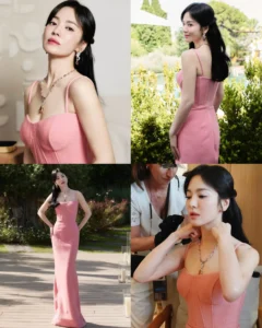 Dalam beberapa kesempatan formal, Song Hye Kyo terlihat memikat dengan setelan jas berwarna netral, dipadukan dengan sepatu hak tinggi. Penampilan ini menunjukkan sisi profesional dan percaya diri.